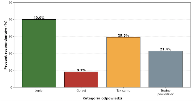 * Wysoki odsetek osób niezdecydowanych (21,4%) wskazuje na potrzebę kontynuacji badań w przyszłości, gdy społeczeństwo będzie miało więcej czasu na obserwację i ukształtowanie opinii.