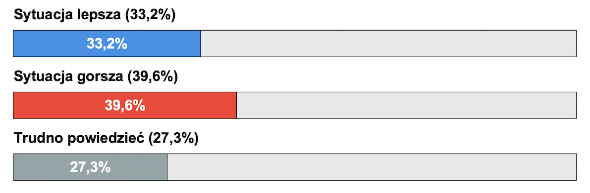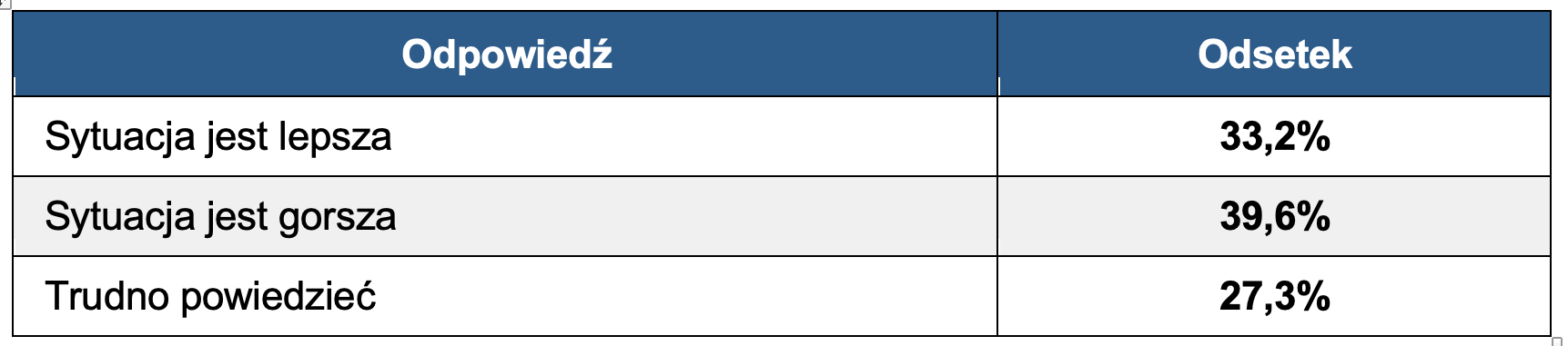 Jedna trzecia badanych (33,2%) dostrzega poprawę sytuacji, co sugeruje, że część społeczeństwa pozytywnie odbiera działania obecnego rządu w zakresie wymiaru sprawiedliwości, w tym ustawę praworządnościową dotyczącą Krajowej Rady Sądownictwa.